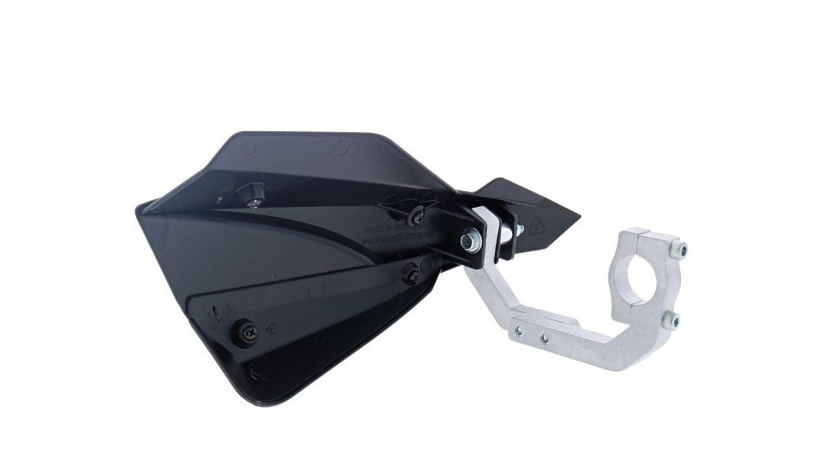 It has slim profile handlebar clamps for easy installation. The clamps are manufactured from high grade aluminium with adjustable fit in 2 side positions. The SABRE features impact resistant moulded plastic guards. With top & bottom deflectors fitted, riders have the ultimate coverage from roost, trail debris and harsh environments. With the deflectors removed, the low profile guard provides a minimalist design with venting for increased airflow. The SABRE range of handguards has an extensive range of deflector colors matched to popular motorcycle brands.