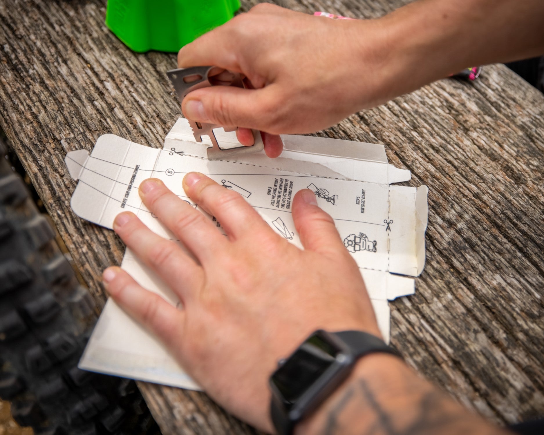 - You can carefully pour the sachet straight into the top of the bottle. Or using the box, fold the inside of the lid together using the printed lines as a guide and use this as a funnel to pour the powder into your bottle. (Please see our video for full instructions on this).